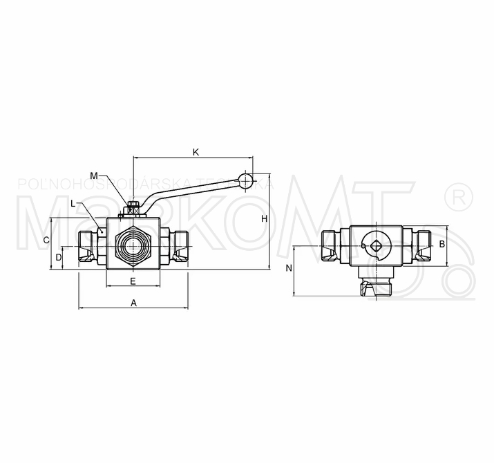 BALL VALVE 3 WAY 12L M18x1.5