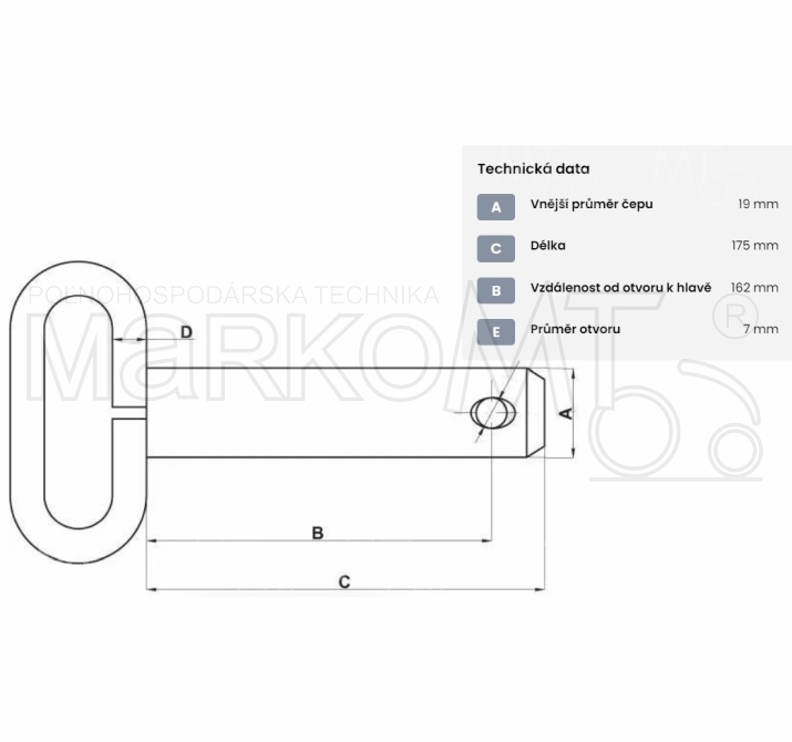 CONNECTION PIN WITH HANDLE 19x162mm