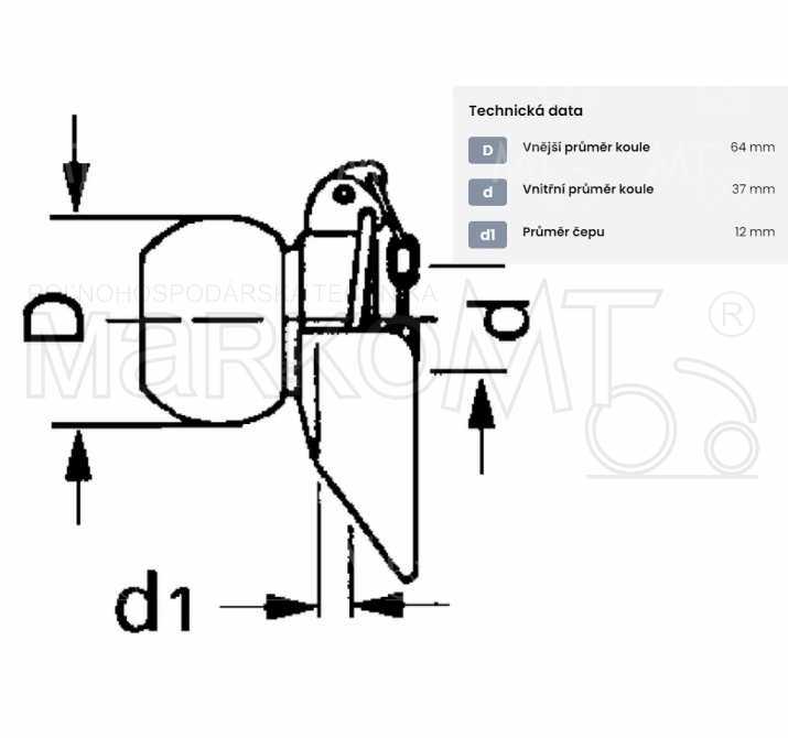 LOWER LINK BALL WITH GUIDE CONE CAT.3/3 37/64x12mm