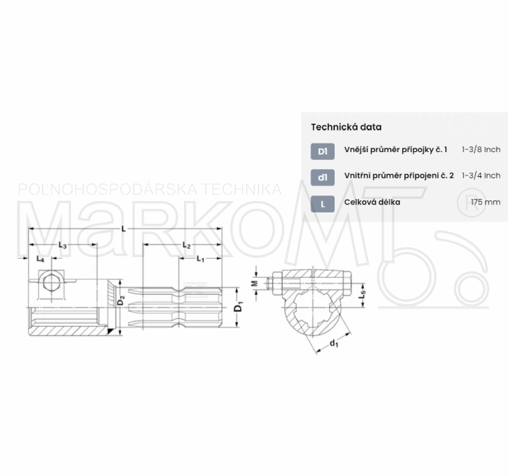 Total length: 175 mm